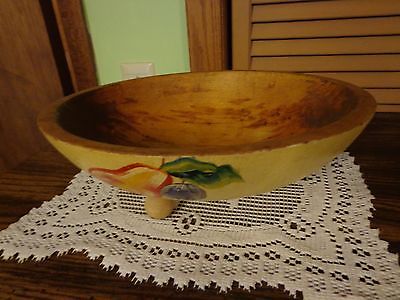 VINTAGE WOODEN 10.5" DOUGH BOWL - FRUIT BOWL - 3 FOOTED