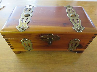 VINTAGE WOOD CEDAR TRINKET JEWELRY BOX DOVE TAIL BRASS METAL HARDWARE NICE!!!