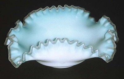 Antique Victorian blue white clear glass brides basket ruffled ground pontil