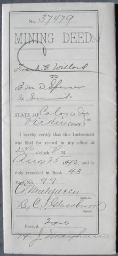 1890 Mining Deed SUMMIT LODE Aspen COLORADO