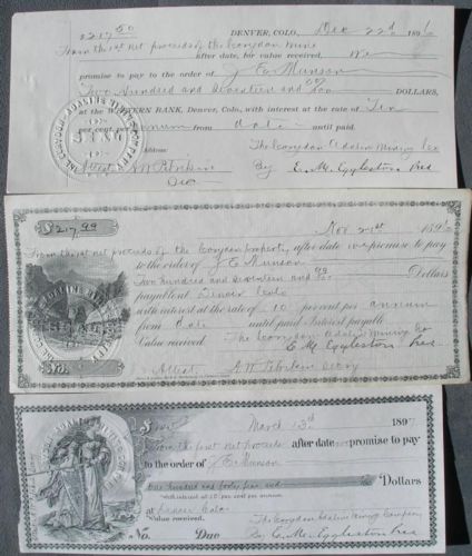 Title (ebay affiliate link): 1896 Checks CORYDON-ADALINE Mining Co. DENVER Colorado