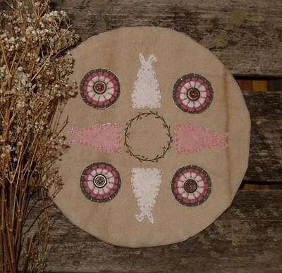 Primitive EASTER Bunny Rabbits Bittersweet Penny Rug ~Stacked Circles Candle Mat