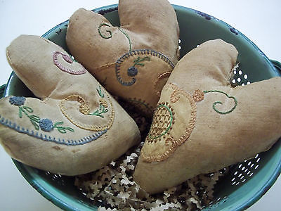 Title (ebay affiliate link): PRIMITIVE COUNTRY 3 HEARTS (from Antique Tablecloth) ORNIES BOWL FILLER