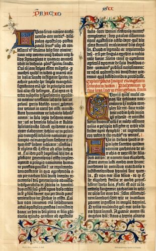 Title (ebay affiliate link): 1894 GUTENBERG BIBLE SHEET 1455 FACSIMILE Antique Chromolithograph Print