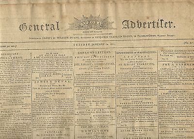 Title (ebay affiliate link): 1801 U.S. newspaper "AURORA GENERAL ADVERTISER" January 20, 1801