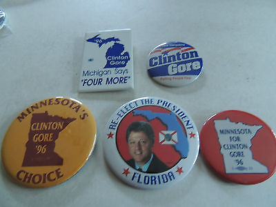 Old Political Campaign Pin Group Bill Clinton Group 7 States Five pins!1992-2000