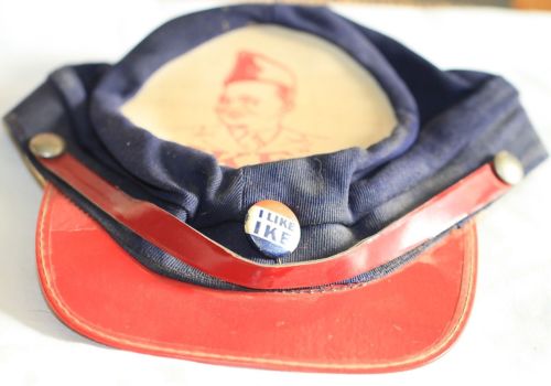 Title (ebay affiliate link): Eisenhower "Ike" Rebel Cap W/ I Like Ike Pin Pinback Presidential Campaign