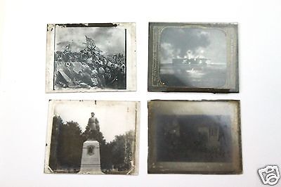 Lot of 4 Magic Lantern Slides Images Civil War Related Scenes Military