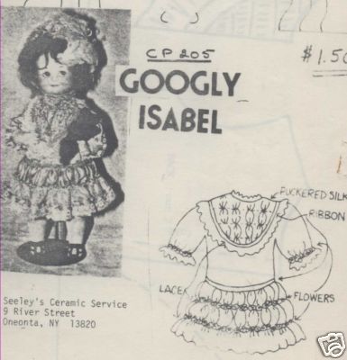 8"ANTIQUE GOOGLY DOLL CLOTHES/DRESS&BONNET PATTERN