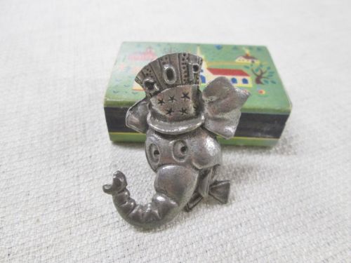 VINTAGE GOP REPUBLICAN ELEPHANT WEARING PATRIOTIC HAT PIN BROOCH