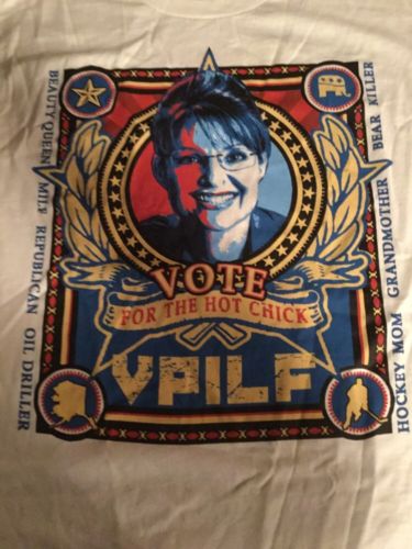Title (ebay affiliate link): RARE Sarah Palin EX.Large tee shirt ,never worn VPILF vote hot chick