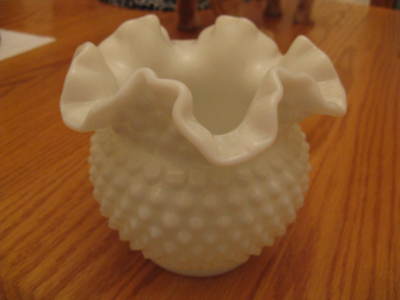 VTG FENTON Milk Glass Double Fluted Ball Vase Hobnail