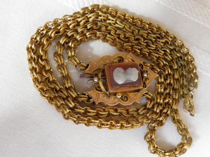 Title (ebay affiliate link): Antique Victorian/DECO Gold Fill Cameo Slide Necklace