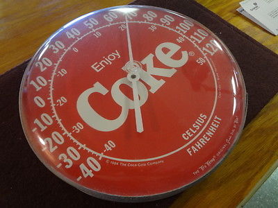 1984 VINTAGE COKE THERMOMETER COCA-COLA 12" "THE TRU TEMP ORIGINAL JUMBO DIAL