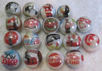 Title (ebay affiliate link): Coca-Cola soda pop 5/8 size glass marbles collection