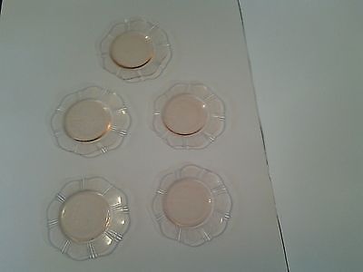 Antique / Vintage Pink Depression Glass: 5 Piece Small Saucer Set