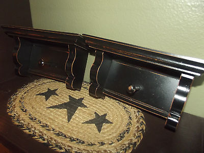 Primitive Oak Wood Shelves Pair of 2 ~ Black Distressed ~ Country Decor