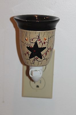 PRIMITIVE CRACKLE COUNTRY CERAMIC WAX WARMER BLACK STAR W / BERRY & VINE