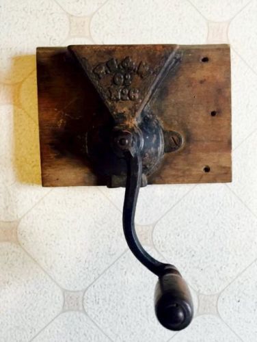 Title (ebay affiliate link): Classic Coffee Grinder . Early 1900s . Bolted To Piece Of Wood . Very Ornate !