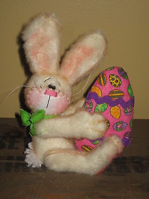 PRIMITIVE HC EASTER BUNNY RABBIT W/ EGG SHELF SITTER ORNIE BOWL FILLERS