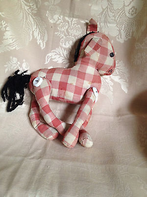 Antique primitive stuffed handmade toy animal doll gingham horse jointed buttons