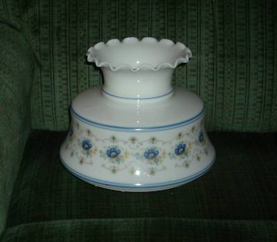 Vintage Milk Glass Hurricane Lamp Shade Blue Flowers