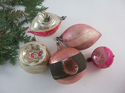 5 Antique Vintage 4 Sided Indent Mercury Glass Christmas Ornament