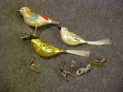3 VTG Antique Mercury Glass Clip On Tree Bird Ornaments f/Parts or to Restore~