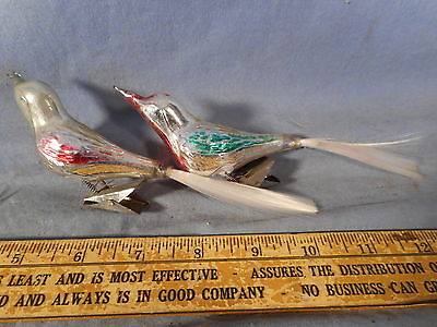 2 Vintage Bird Glass Clip-on Christmas Ornaments antique estate auction find