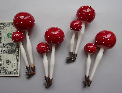 LOT OF 4 big size OLD CLIP ON BLOWN GLASS DOUBLE MUSHROOMS Christmas Ornaments