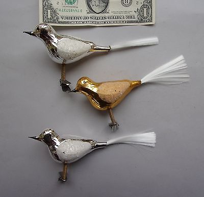 3 OLD big size CLIP ON BLOWN GLASS BIRDS Christmas Ornaments