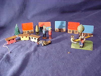 15 pcs Vintage ERZGEBIRGE GERMANY Wooden CHRISTMAS VILLAGE Buildings-People +