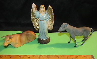 VINTAGE CHRISTMAS~NATIVITY DONKEY~ANGEL~COW~GERMAN~PUTZ ERZGEBIRGE~CRECHE