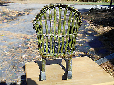 SALESMAN SAMPLE WICKER ANTIQUE ROCKER CHAIR ORIGINAL GREEN PAINT FURNITURE