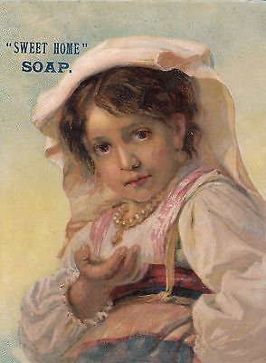 Sweet Home Soap Girl with Hand Out Victorian Card or Label c1880s