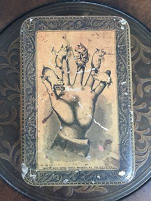 ANTIQUE 1879 SOMERS BROS FINE METAL ADVERTISING BOX 5 FIVE LITTLE PIGS TIN
