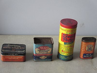 Title (ebay affiliate link): LOT OF 4 VINTAGE TINS PATCH KIT TINS & EMERGENCY LIGHT BULB TIN