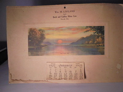 Title (ebay affiliate link): 1927 Calendar Advertisement Wm. Lofland Buick & Cadillac Motor Cars Norwalk Ohio