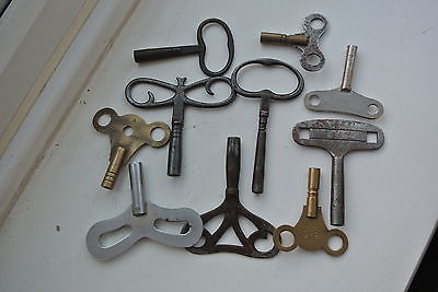 10 ANTIQUE CLOCK KEYS METAL AND BRASS ASSORTED SIZES