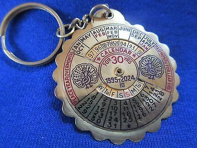 Title (ebay affiliate link): Peacock Vintage 30 Year Calendar Brass Keychain Key Chain made India 1995-2024