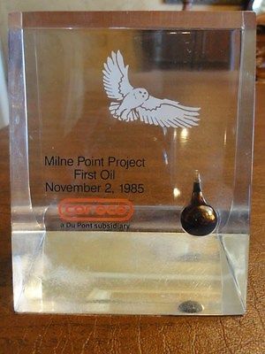 Title (ebay affiliate link): Conoco Lucite Paperweight Milne Point Project First Oil November 2, 1985