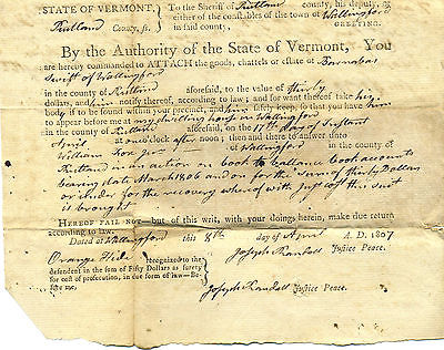 Title (ebay affiliate link): 1807 VERMONT LEGAL DOCUMENT SIGNED JOSEPH RANDALL REVOLUTIONARY WAR PATRIOT