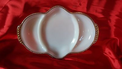 VINTAGE FIRE KING MILK GLASS 3 DIVIDED RELISH DISH GOLD PLATED RIM