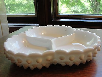 Title (ebay affiliate link): VINTAGE FENTON WHITE MILK GLASS HOBNAIL THREE SECTION DISH WAVY EDGE