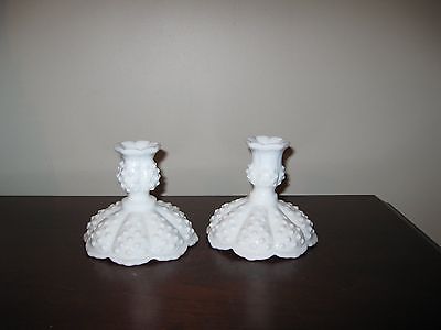 Pair of Fenton White Milk Glass Hobnail Candle Holders