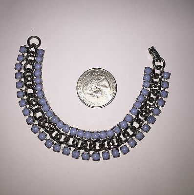 Vintage, Blue Milk Glass Rhinestones In Silver Tone Setting, Chain Bracelete