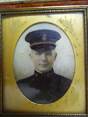 Antique Opalotype Milk Glass Photo Military NAVY Soldier Uniform CIVIL WAR NAMED