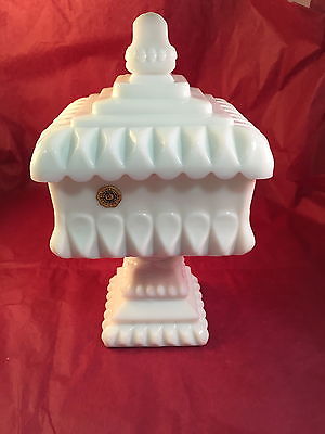Title (ebay affiliate link): Westmoreland Wedding Bowl 1950s Lidded Milk Glass Pedestal Bowl