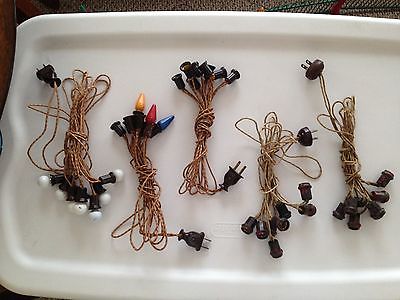 Lot of 5 antique c6 Christmas light sets with cloth cords, Paramount odd bulbs