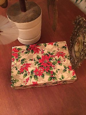 ~ANTIQUE vintage HOLLY berry POINSETTIA paper CHRISTMAS box~